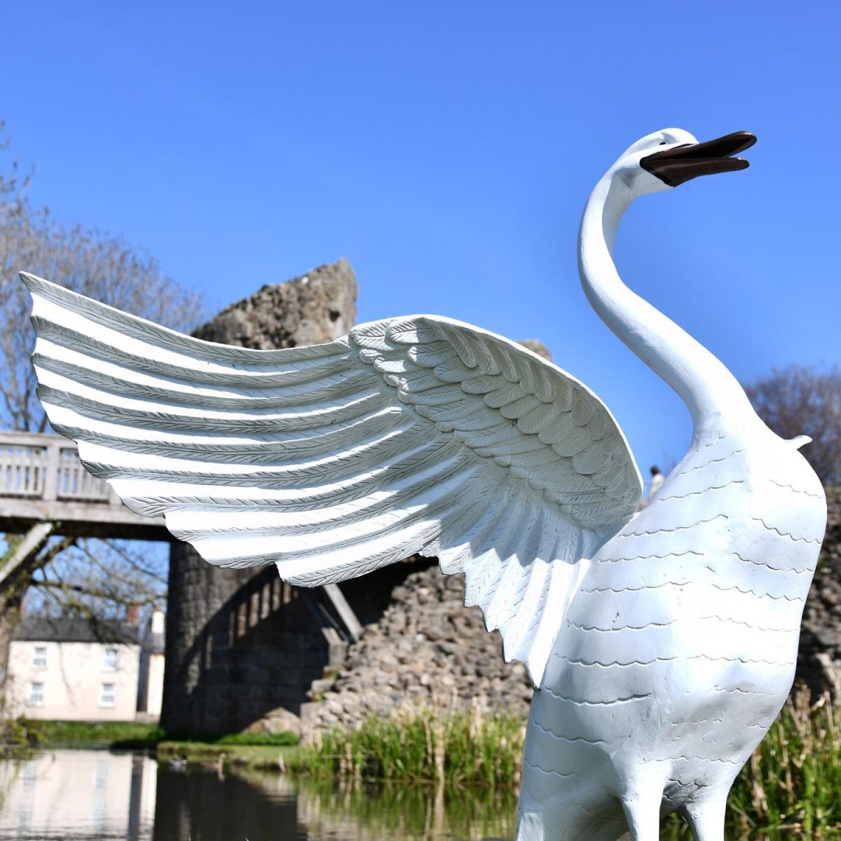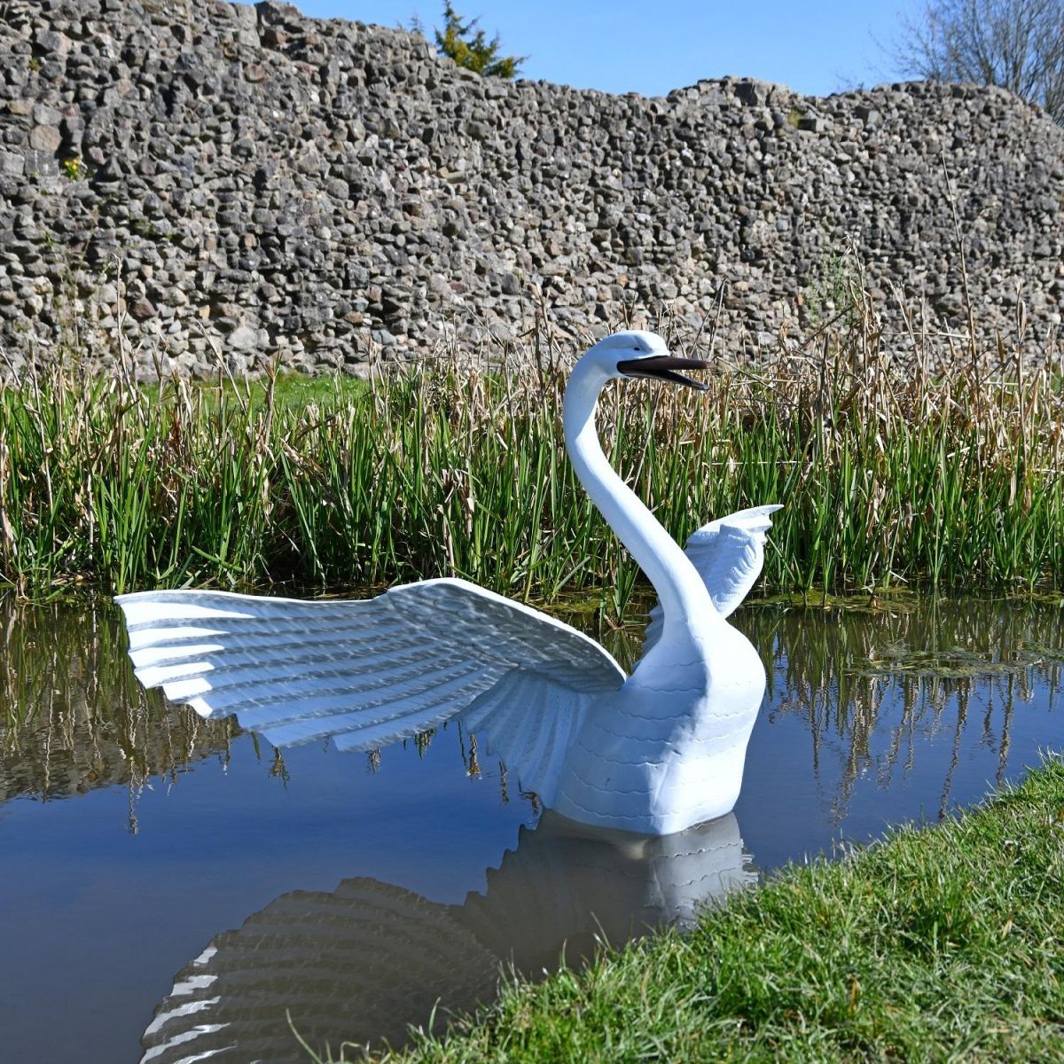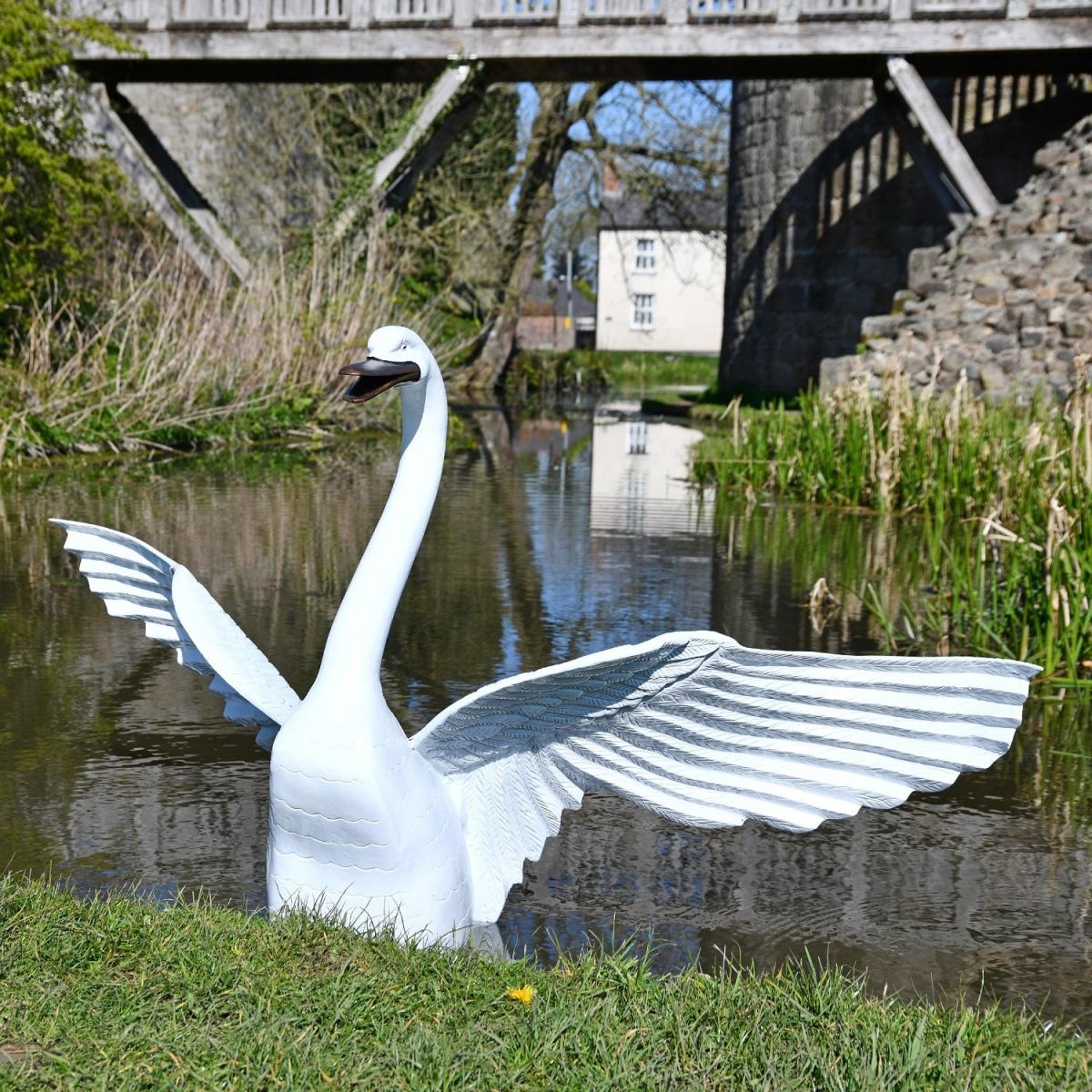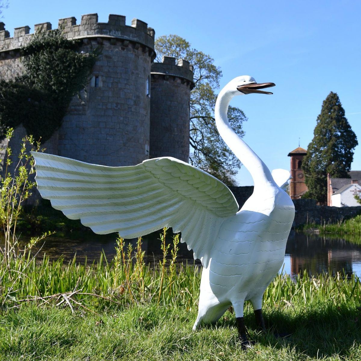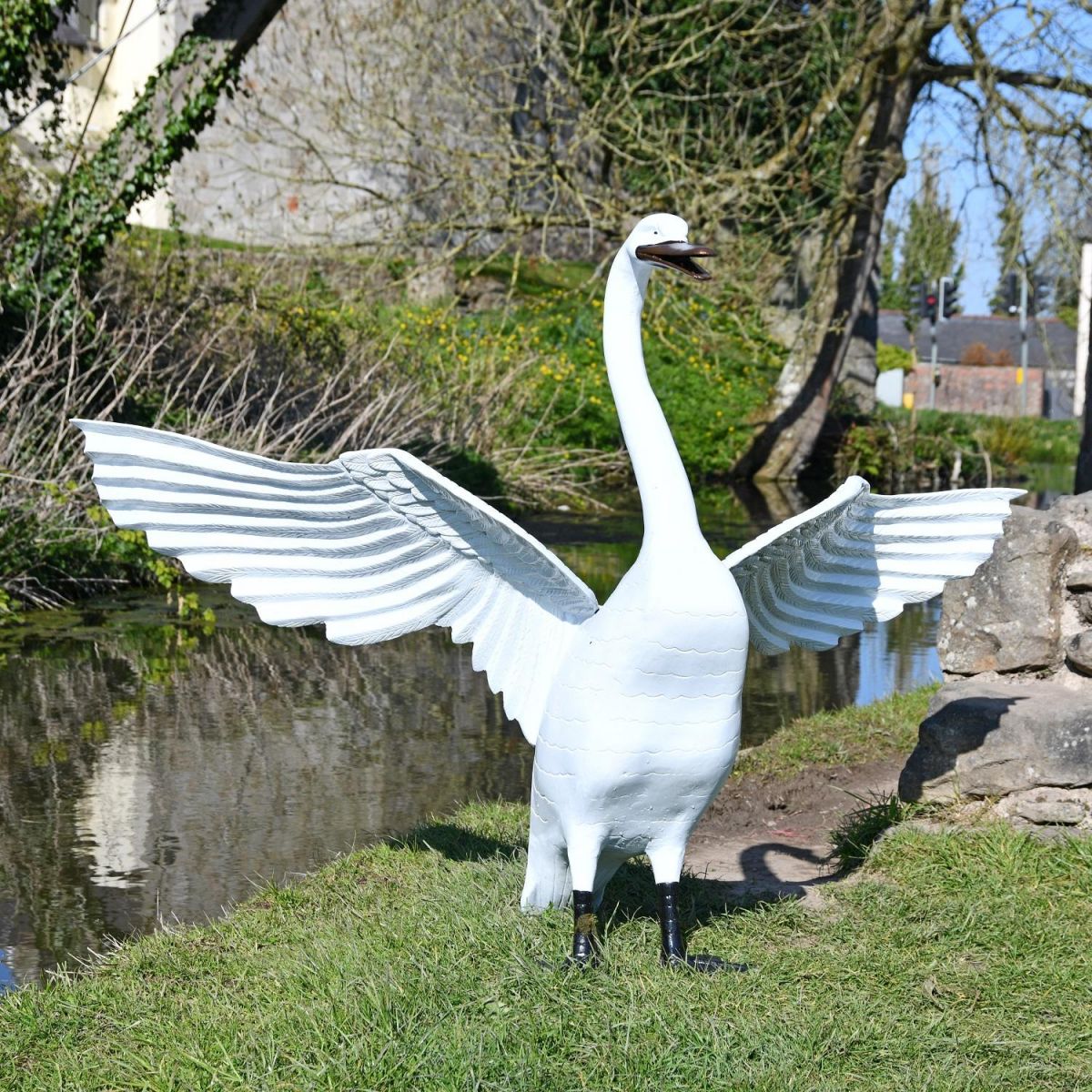 This is no ugly duckling! The most beautiful and regal of flight birds, the Swan is a protected species whereby Queen Elizabeth II owns all living animals and previous royals have done since the 12th Century. Crafted from aluminium and finished in a white finish with orange and black bill detailing, this Swan sculpture is an impressive focal point in any pond, lake or grounds. Stood with wings spread out, as if repositioning itself or just about to take flight, this swan sculpture features delicate detailing throughout the wings which mimic that of the real thing. An exquisite garden sculpture which oozes royalty and charm. This sculpture does have fixing points.