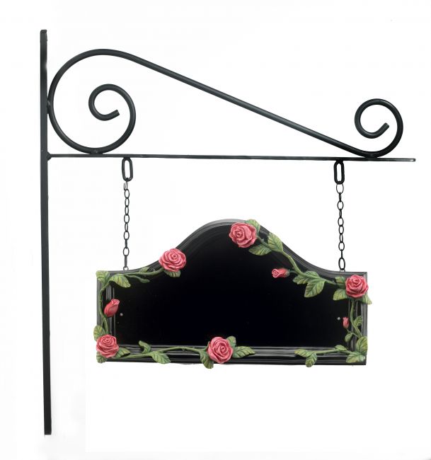 The epitome of elegance this design is framed by an enchanting border of hand painted roses. Each rose is finished in a beautifully crisp winter white, complimenting perfectly the polished black of the arched plaque.