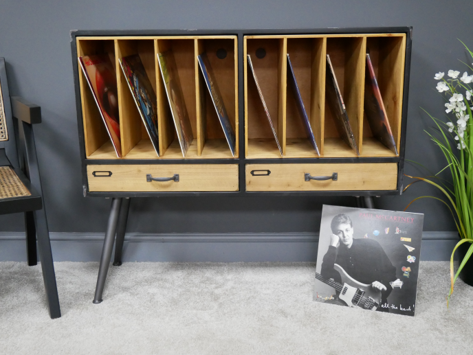 Handcrafted from a combination of high-quality steel and natural wood, this filing cabinet takes its inspiration from both industrial design and retro styles. Featuring eight integral storage spaces, this unit is the perfect way to keep your files, magazines, comic books, or records stored safely and securely throughout all months of the year. Complete with two integral drawers for storing smaller bits and bobs, this stylish filing cabinet would look perfect placed within any office, lounge, or workshop setting!