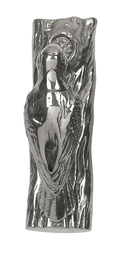 This unique door knocker is beautifully crafted from solid brass with a chrome finish applied to highlight the detailing on the woodpecker's plumage. The woodpecker is hinged at the feet and rocks forward for the beak to strike the risen wood knot striker plate. This characterful door knocker is sure to bring a smile to the face of your guests for many years to come.