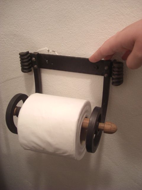 Our wrought iron, blacksmiths toilet roll holder is simple to use and will add originality to your bathroom.