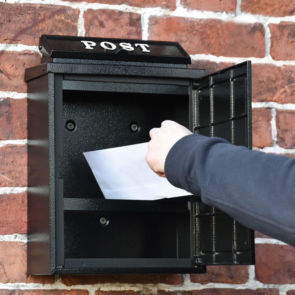 The large hinged door allows for easy mail retrieval and the retention bar stops mail falling to the floor when first opened. The rear of the post box features 3 fixing points and is supplied with the necessary fixings.