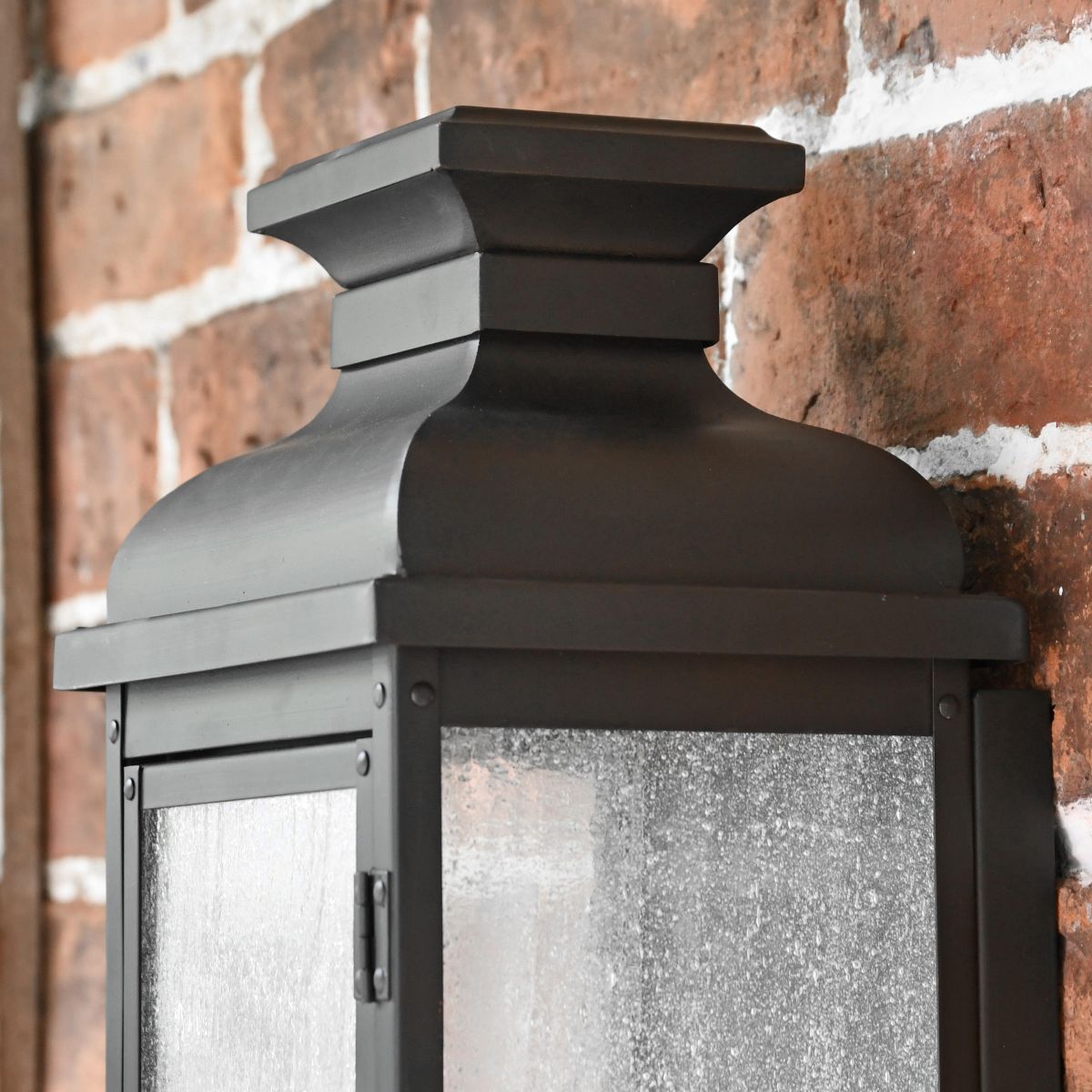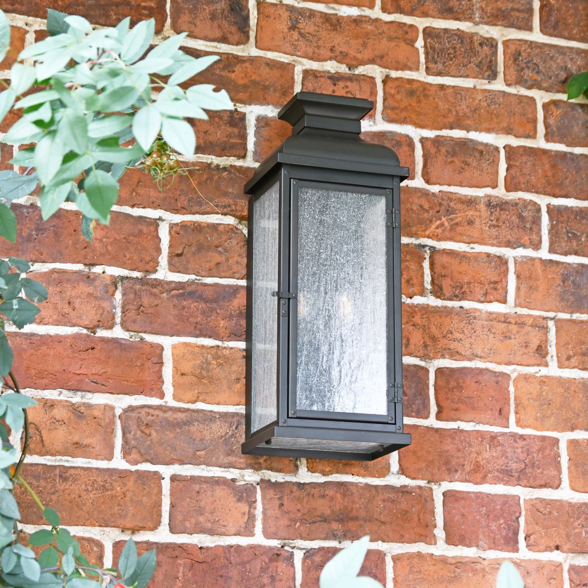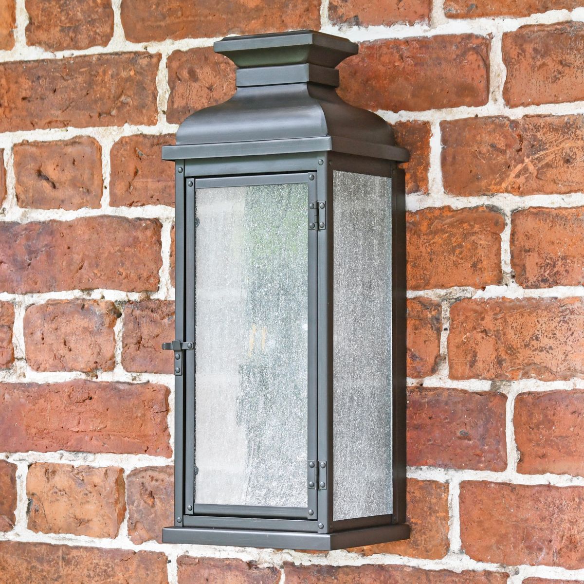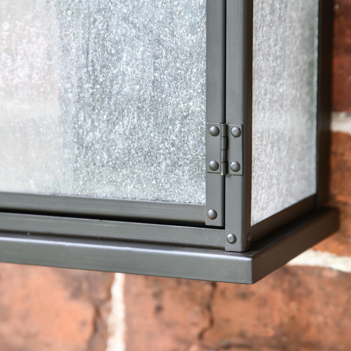 Finished in a rich aged copper, this simple yet stylish design is the perfect way to illuminate your exterior space. This lantern has taken inspiration from classic nautical design in its hand-held lantern shape and frosted glass panes. Designed specifically for flush wall fitting, this lantern is the ideal addition to any home seeking added light without the risk of obstructing a door or entryway. Complete with two central built-in bulb holders and a front opening door for easy bulb changing and use, this lantern would look ideal fitted next to a door or entryway.